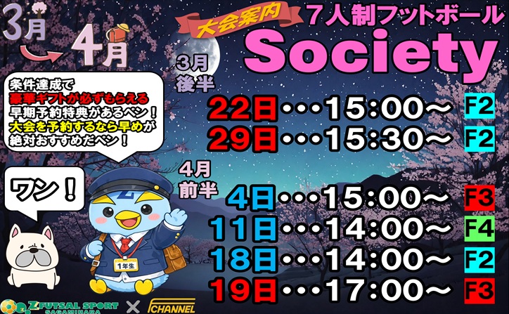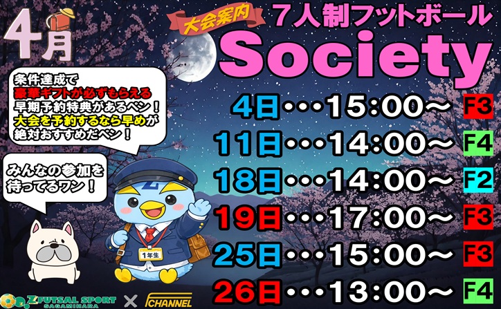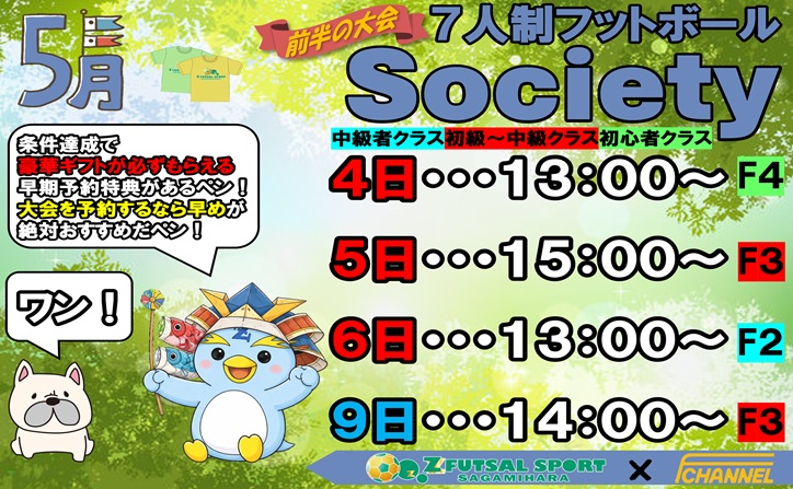 ZFUTSALSPORTさがみはらでは土日祝にエフチャンネル主催の7人制ソサイチ大会を開催しています🔥