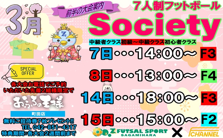 【参加チーム募集中】ゼットさがみはら 3月のエフチャンネルソサイチ大会