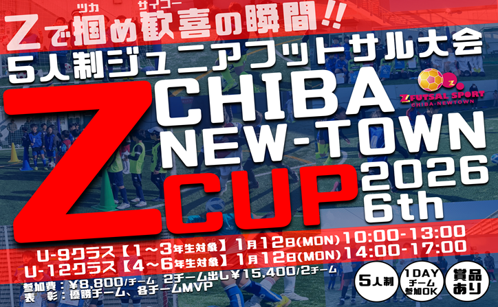 【Z千葉NT杯とは?】 ゼットフットサルスポルト千葉NT店では2026年1月12日(月)成人の日に小学生対象5人制フットサル大会【Z千葉NT杯】を実施いたします♪ ゼットフットサルスポルト千葉NTは近隣地域の印西・成田・白井の少年...